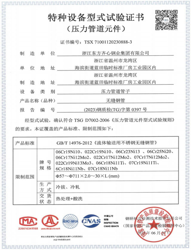 浙江東方齊心以不銹鋼系列產品為主導,品種有不銹鋼管、奧氏體不銹鋼管、高溫合金鋼管、雙相不銹鋼管、鎳基合金管、冷凝器用管、U形管、核電管、不銹鋼管件、法蘭、閥門等。規(guī)格有6-2020x0.8-60mm,Ф16-25長度可達33m。公司擁有精密制造鋼管的各類機械設備25臺(套),其中各類冷軋管機15臺, 冷拔機10臺,天然氣熱處理爐2套。